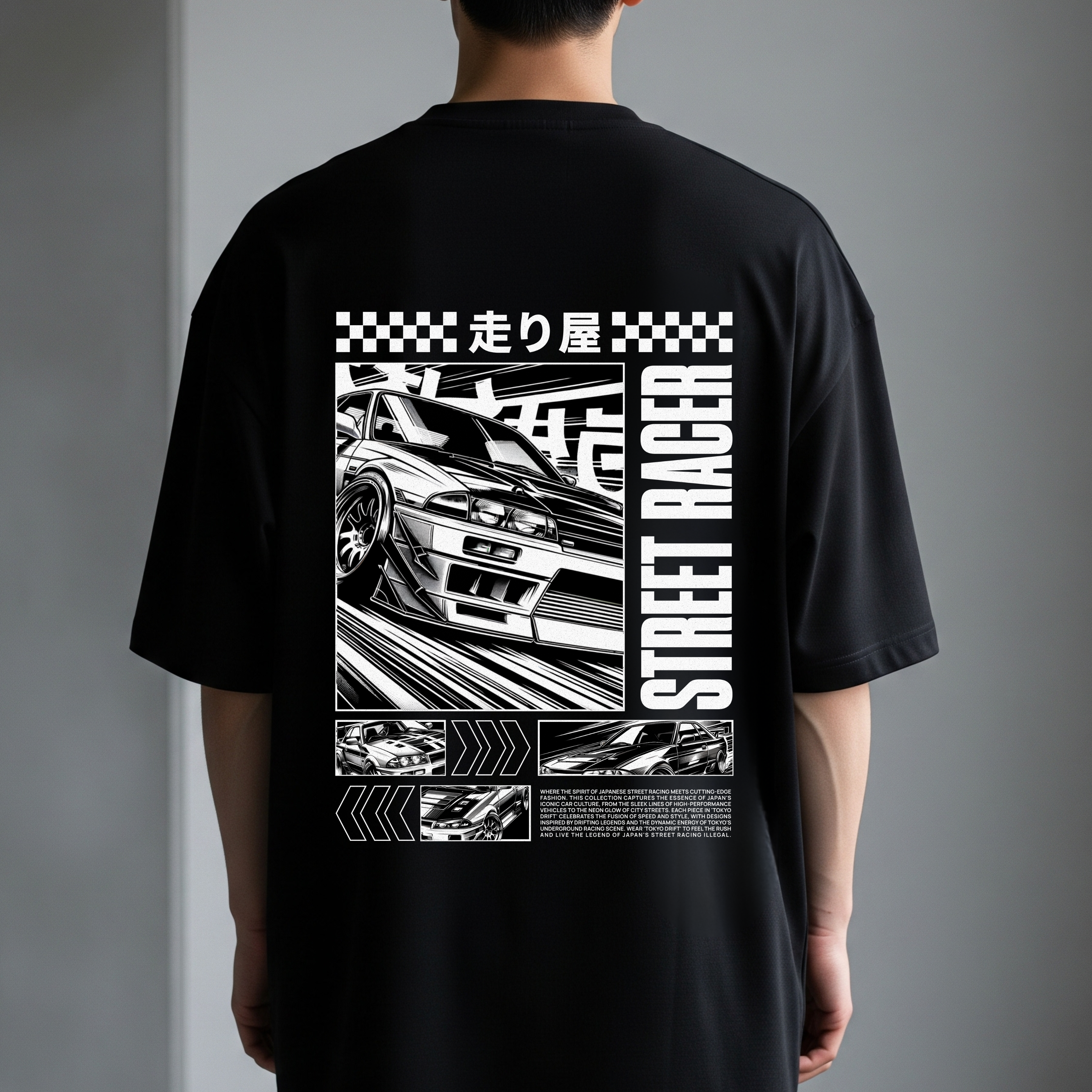 Feel the pulse of underground speed culture in this adrenaline-charged statement piece. The STREET RACER tee fuses manga-style motion with raw automotive power — built for those who live life in the redline. From bold comic visuals to Japanese “走り屋” (Hashiriya) accents, this shirt captures the spirit of late-night drifts and unfiltered freedom.