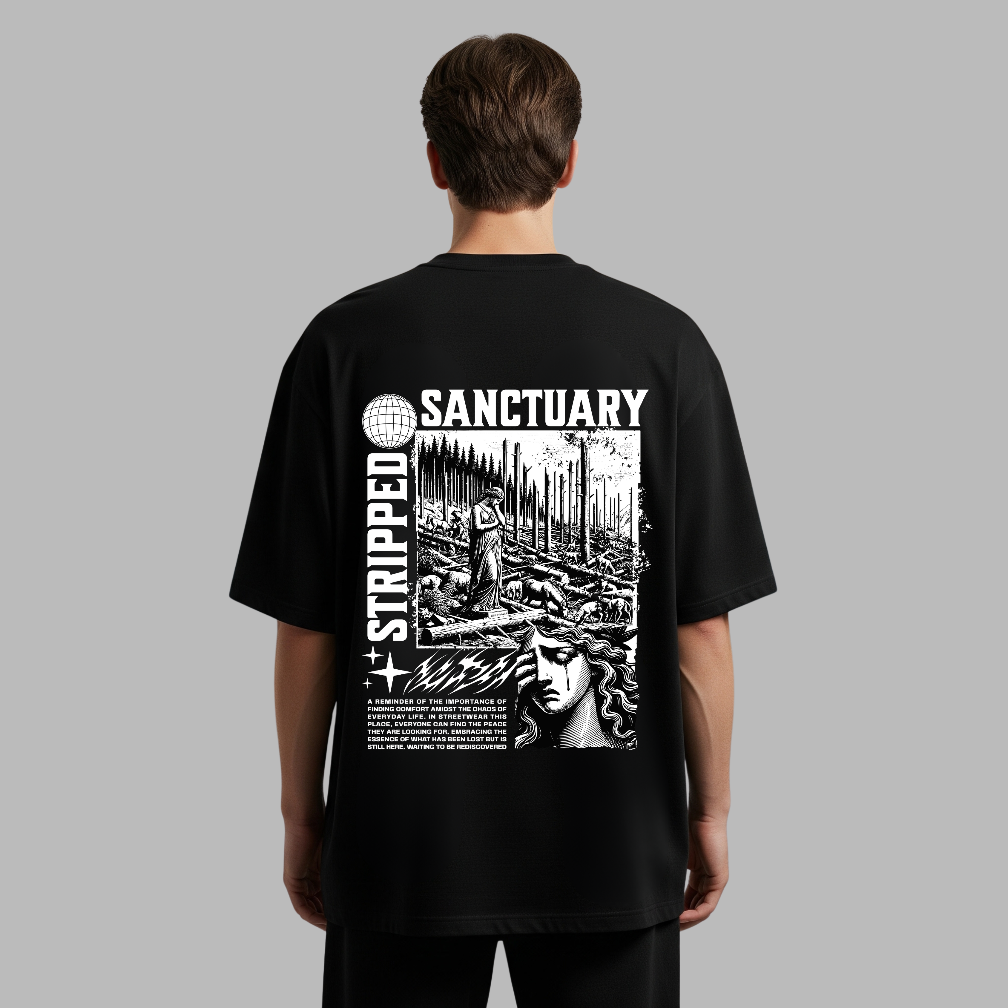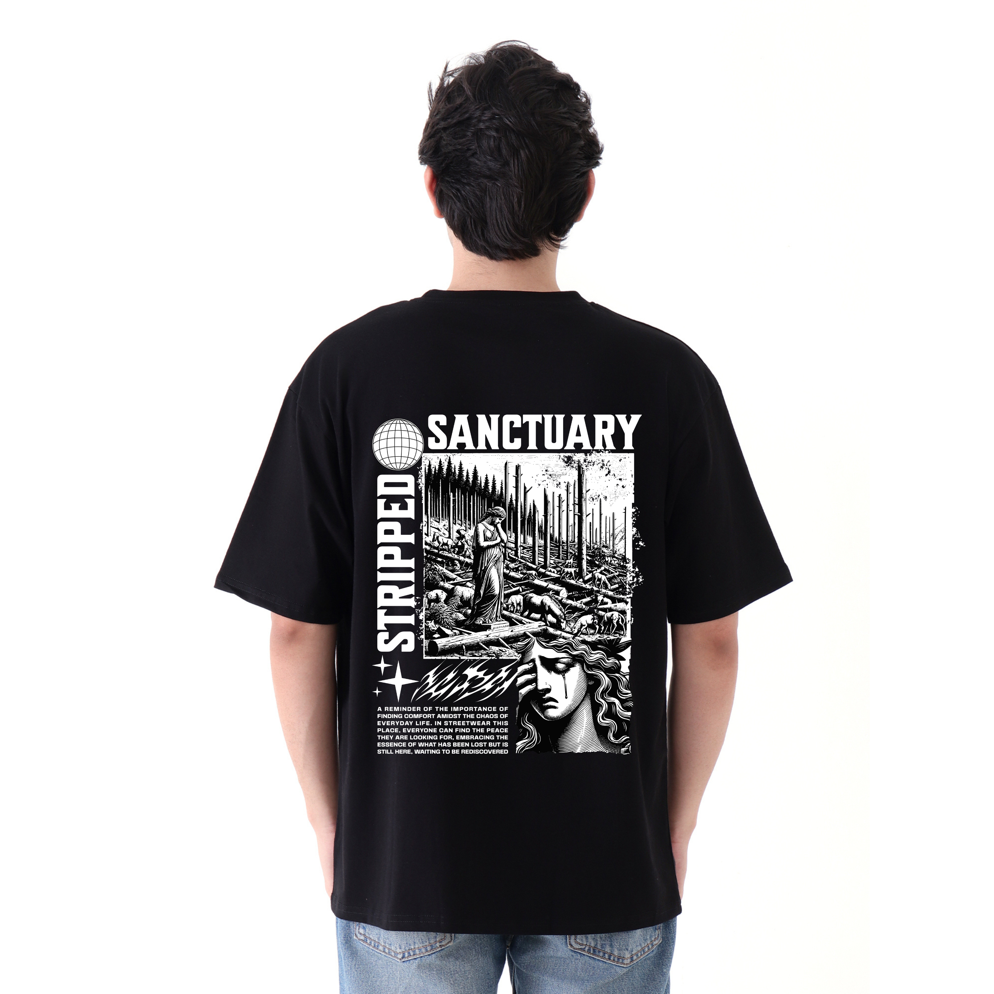 This powerful graphic tee explores the tension between nature, destruction, and rediscovery. With a detailed monochrome illustration on the back and the word SANCTUARY boldly framed, this piece is more than streetwear ā itās a statement. Featuring the text āA reminder of the importance of preservation...ā the design reflects on humanityās disconnect from nature and the silent cry of a world once untouched.